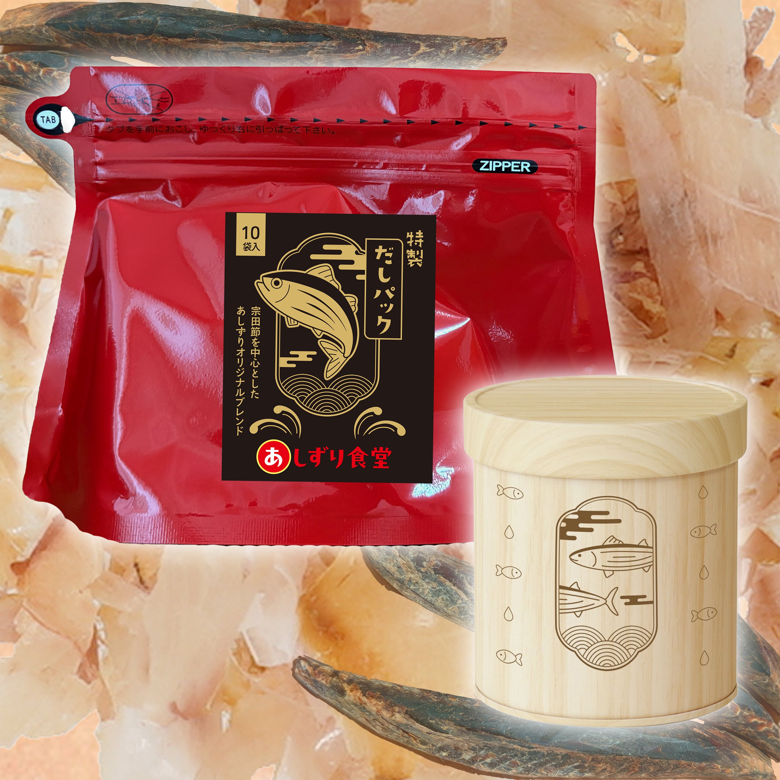 【宗田節を使用!あしずり特製だしパックと保管容器セット】
